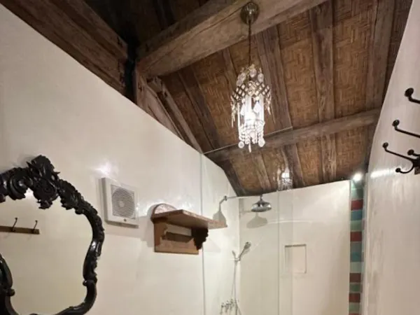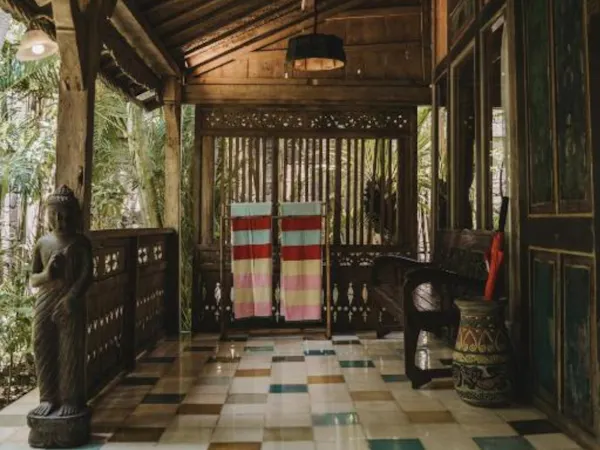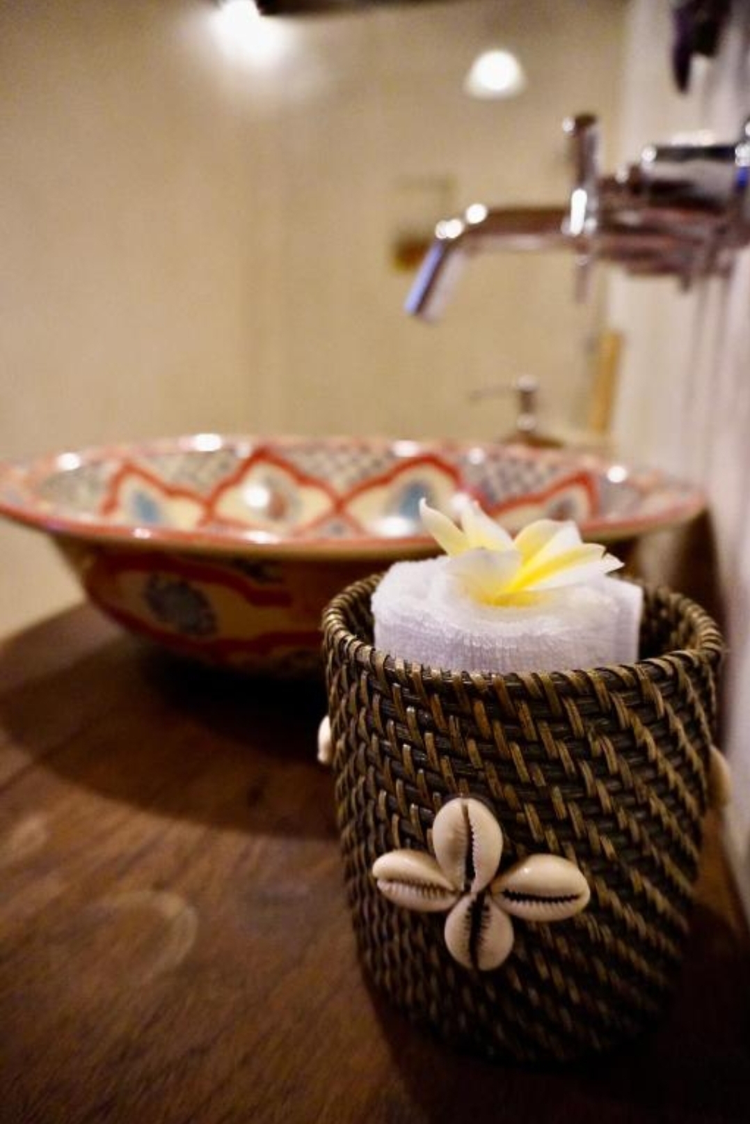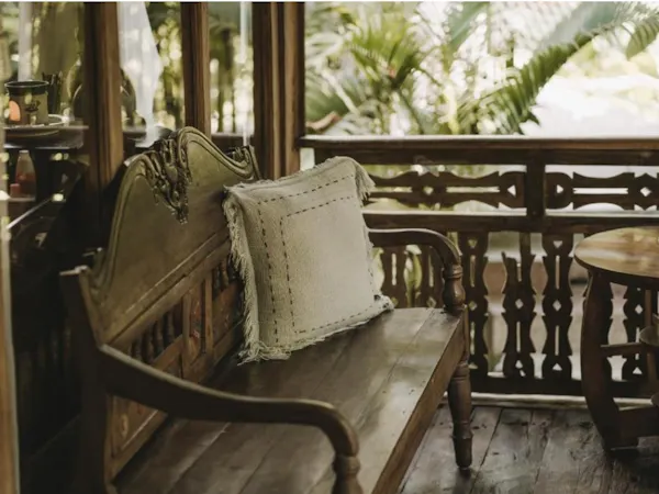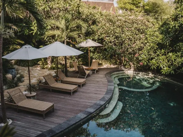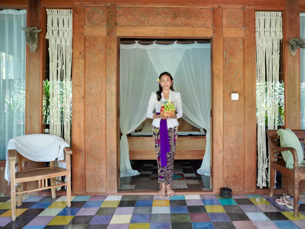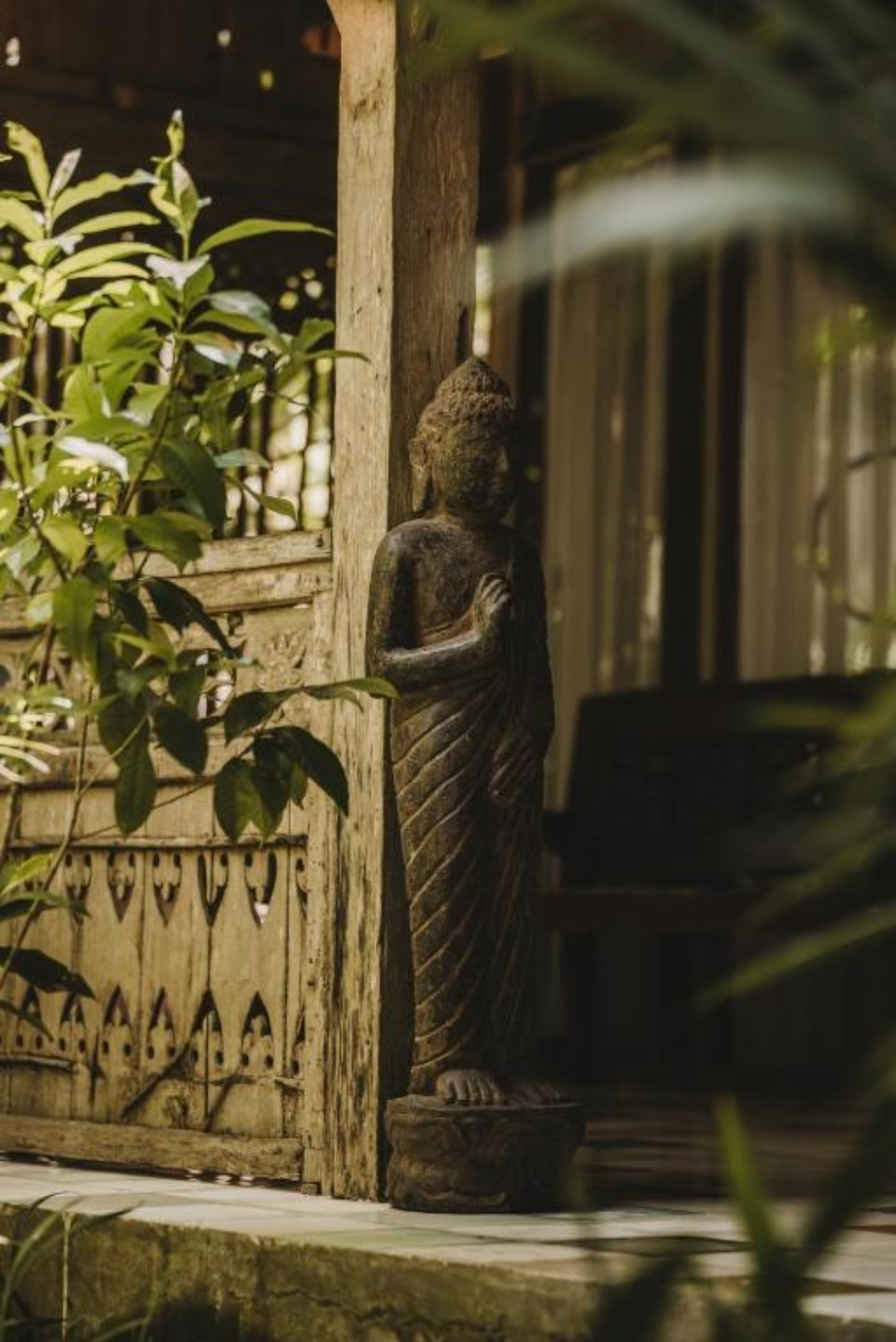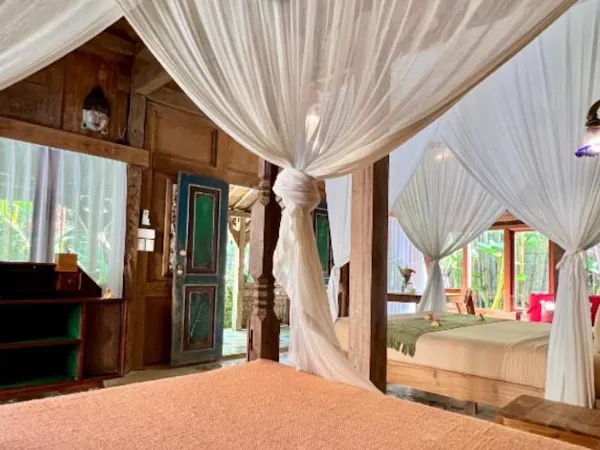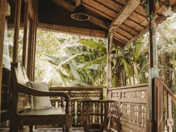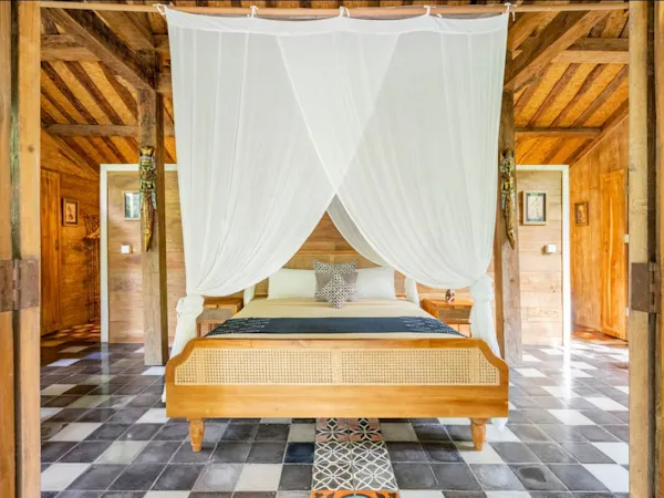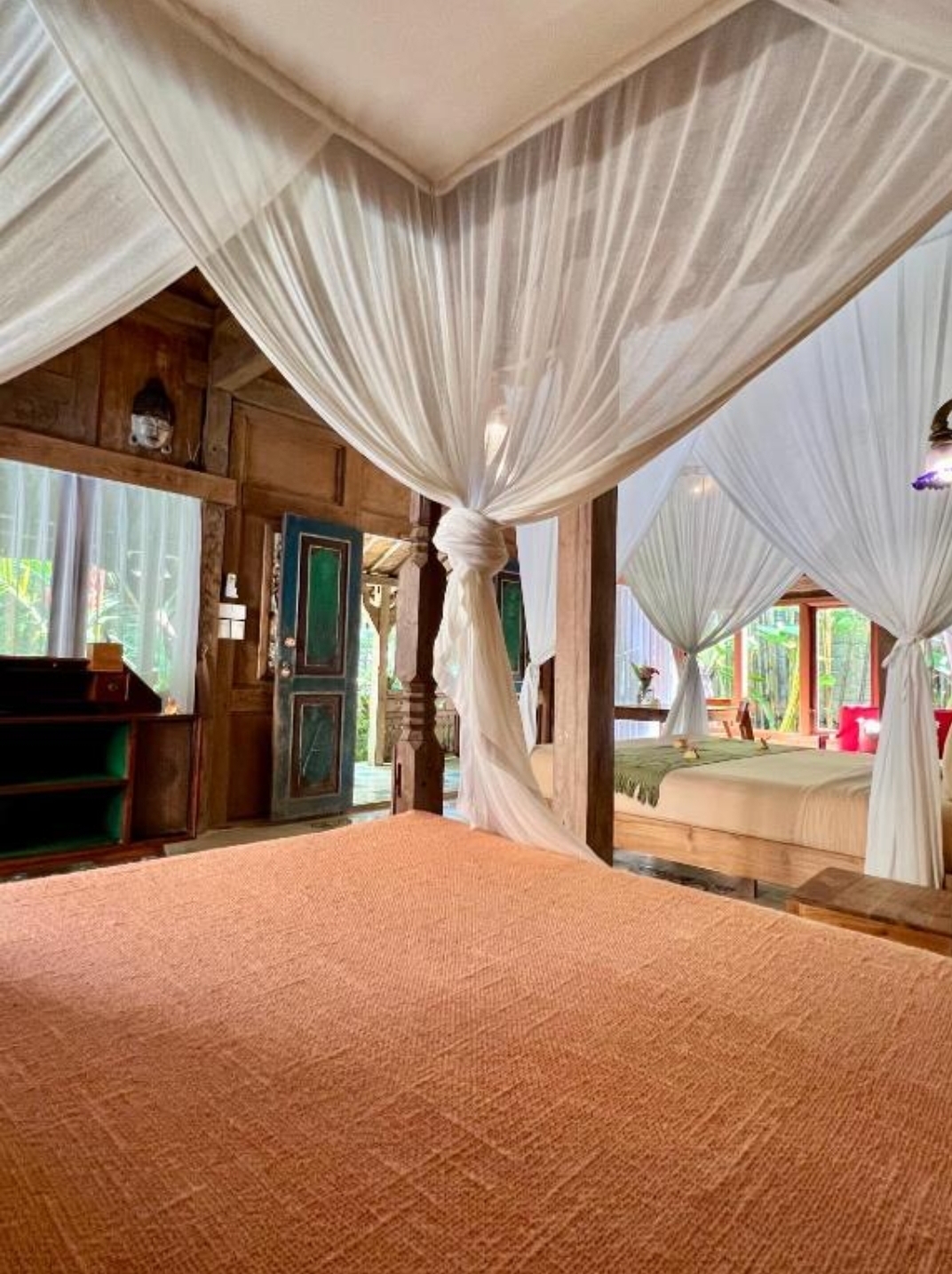 Private bungalow with a patio, totalling 90 square meters. The bungalow is equipped with 2 bathrooms (hot water showers), a kingsize bed, a day bed, a kitchenette, and a working desk.