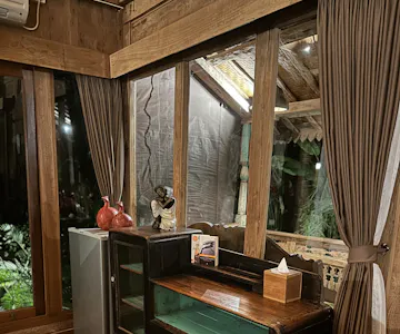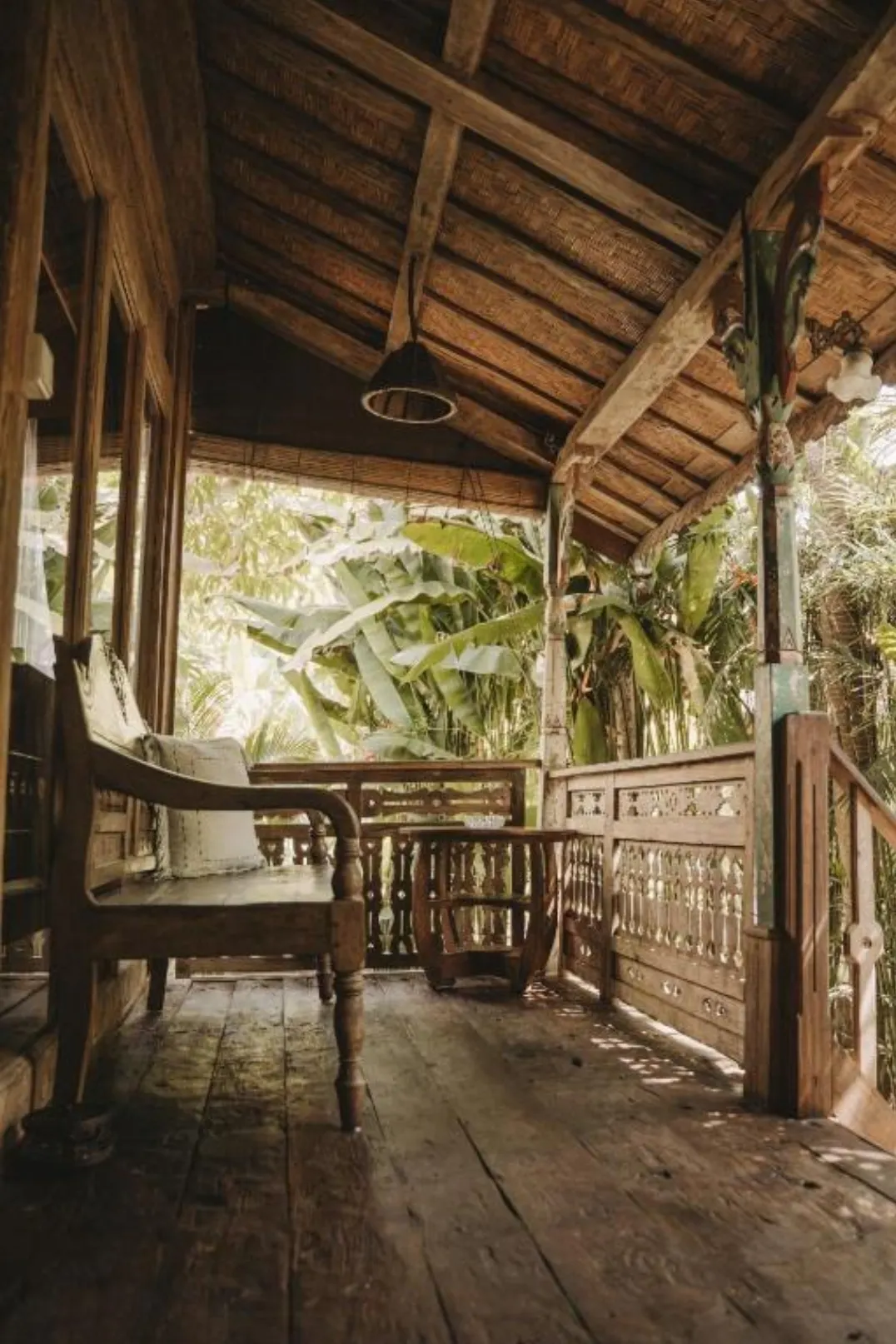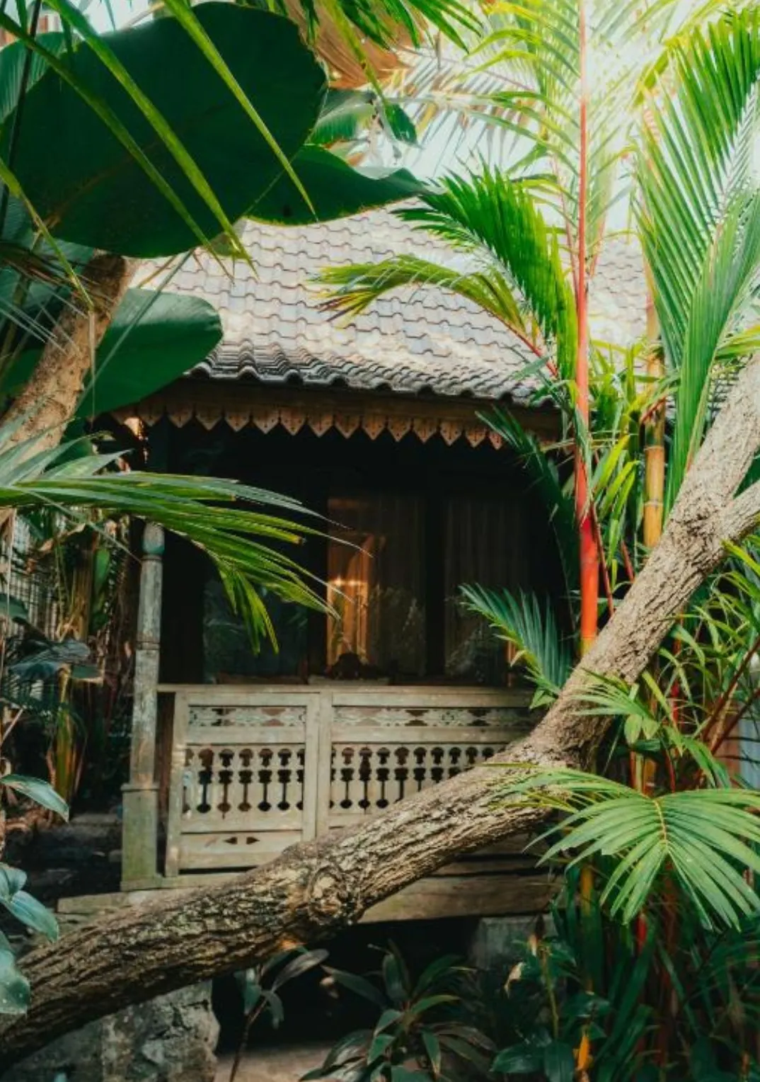 Private bungalow with a patio, totalling 39 square meters. The bungalow is equipped with 1 bathroom (hot water shower), a king size bed, a working desk, and a fridge.