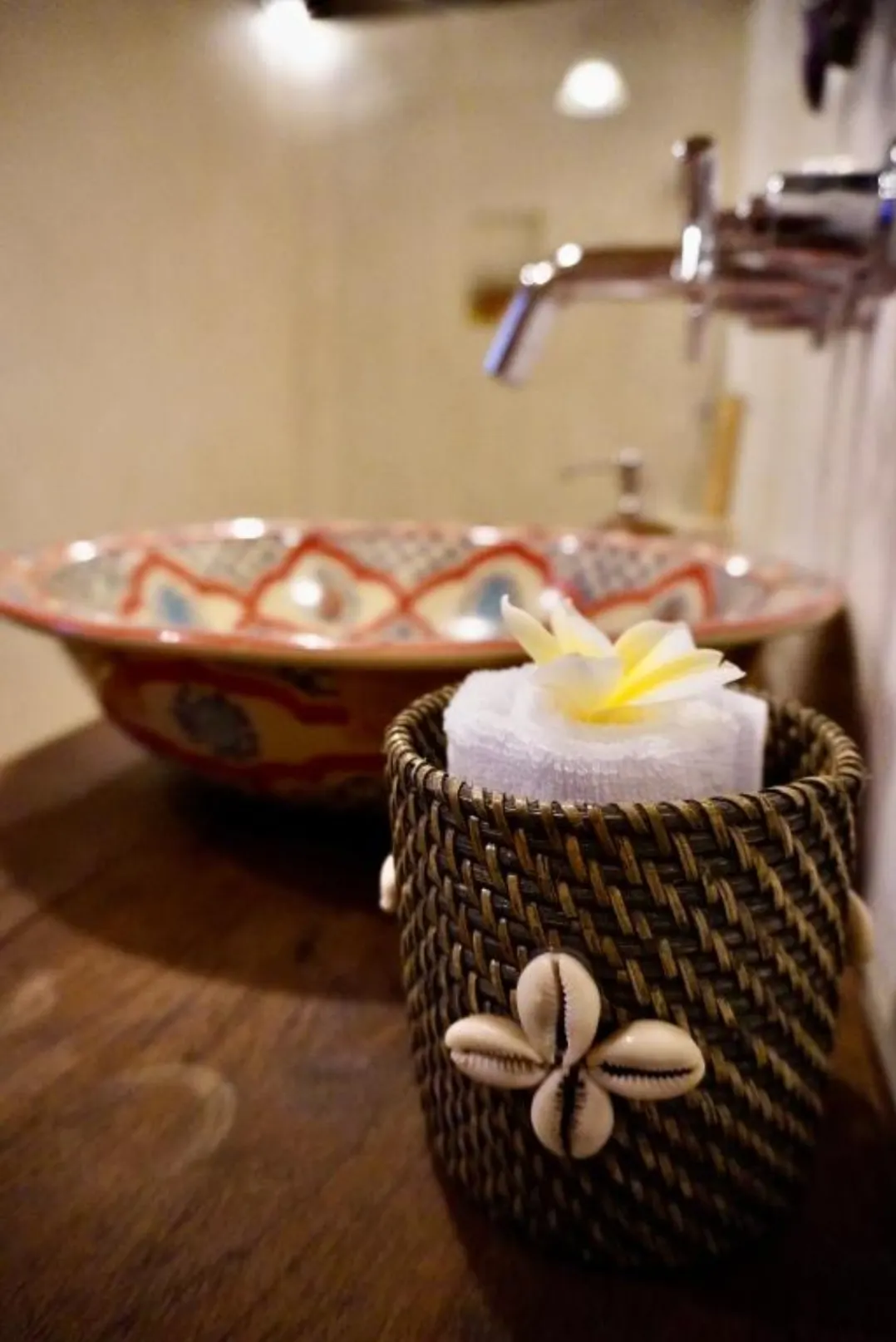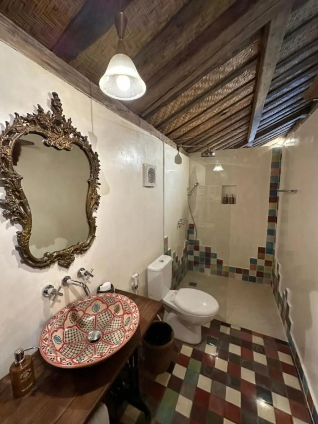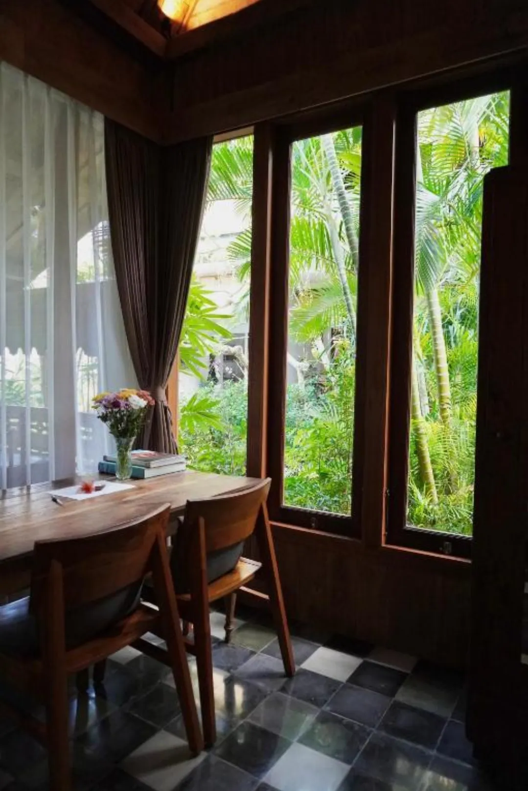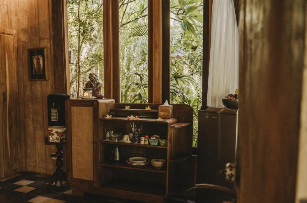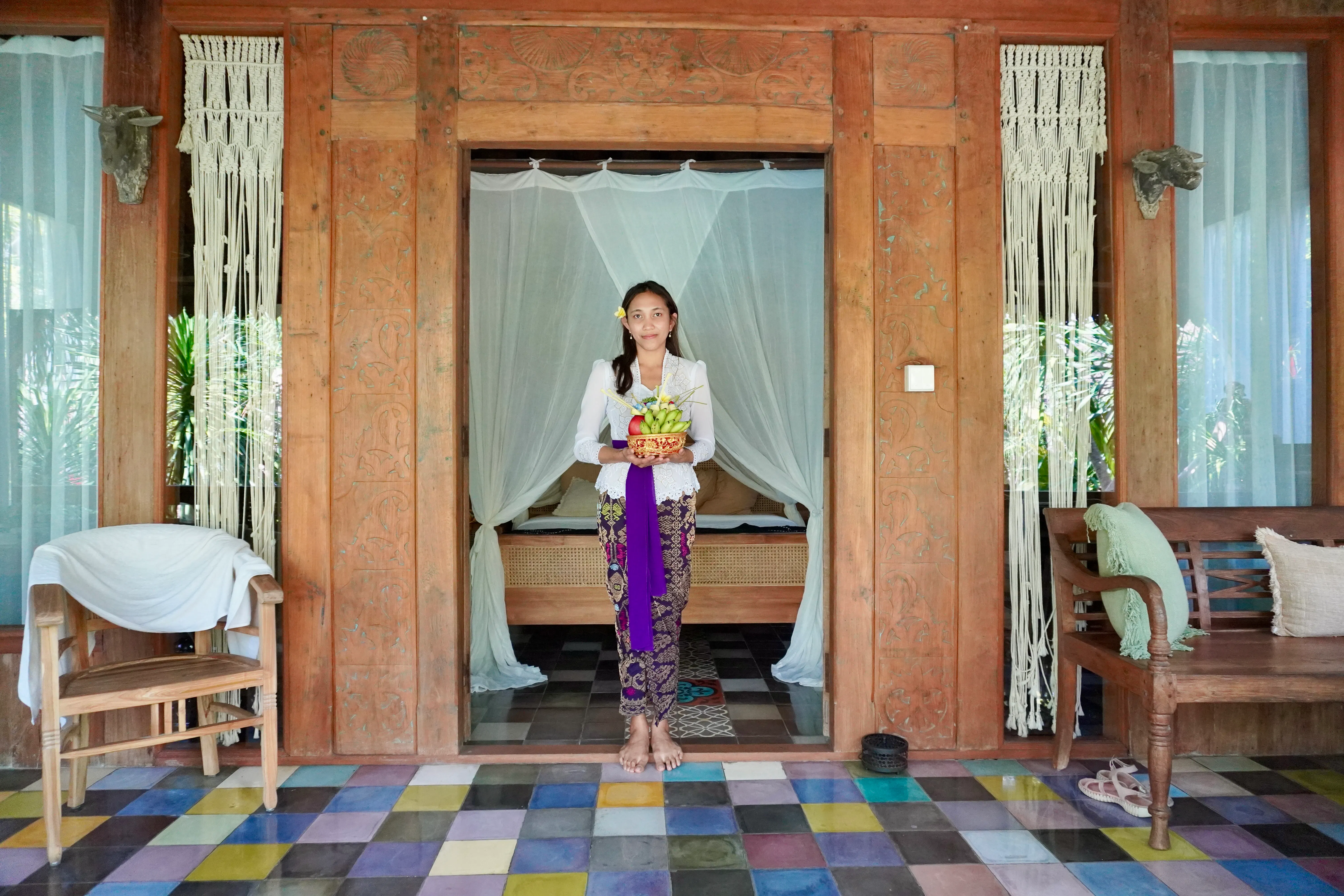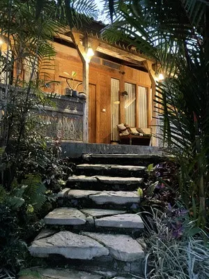 Private bungalow with a private patio, totalling 56 square meters. The bungalow is equipped with 2 bathrooms (hot water showers), a king size bed, a working desk and a fridge.
